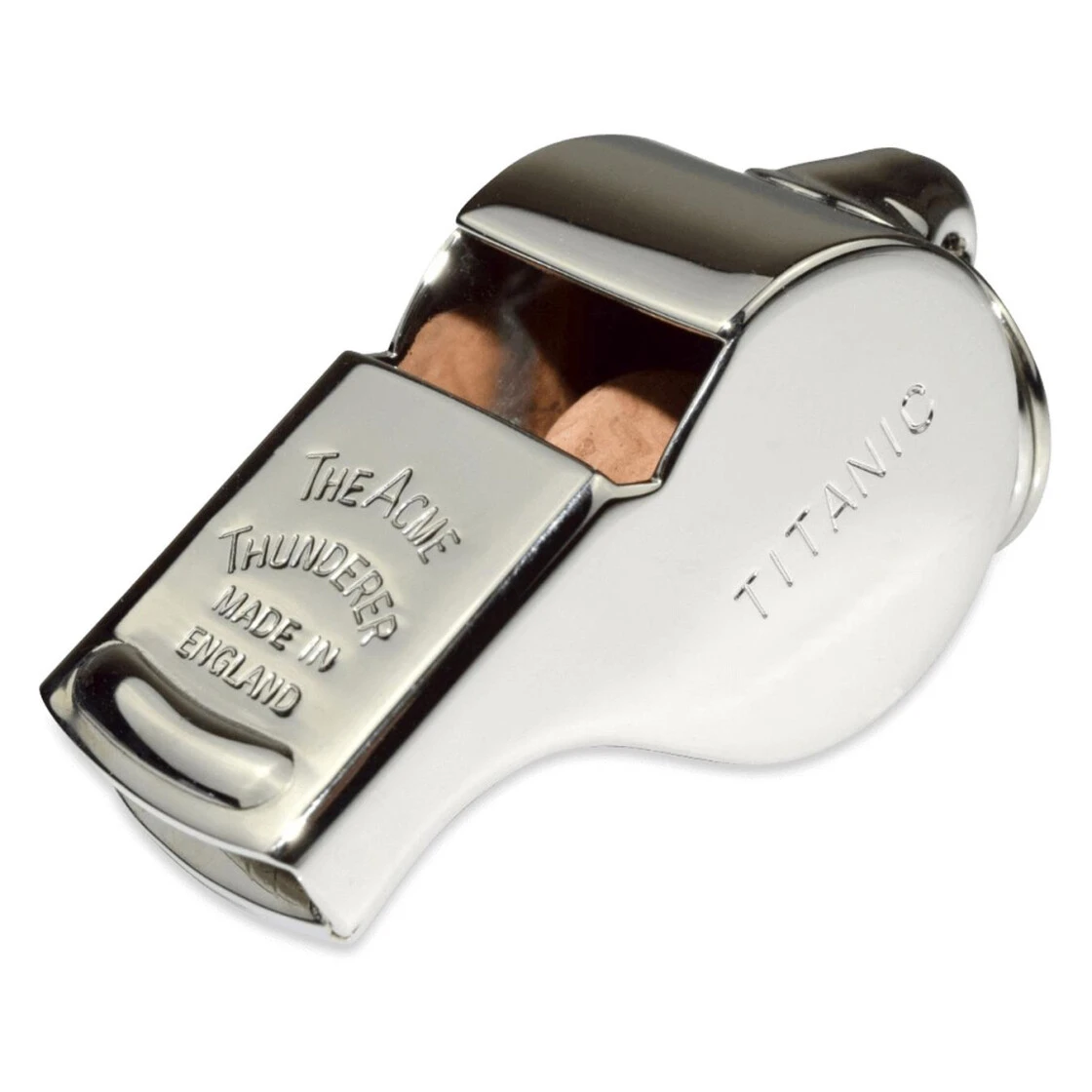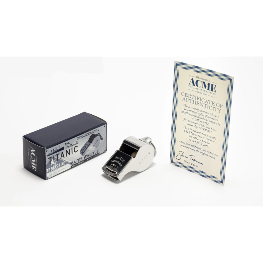 Noch immer wird diese Signalpfeife auf den Originalmaschinen in der Originalwerkstatt hergestellt. Diese authentische Signalpfeife aus massivem Messing, wurde ursprünglich 1912 an die Titanic geliefert. Die Pfeife besteht aus massivem Messing, ist vernickelt und verfügt über eine Erbse aus Kork, wodurch der Trillerton auch bei Nässe unverändert bleibt. Eine Pfeife mit einem sehr markanten und weitreichenden Klang. Die Pfeife wird mit einem Echtheitszertifikat geliefert.
