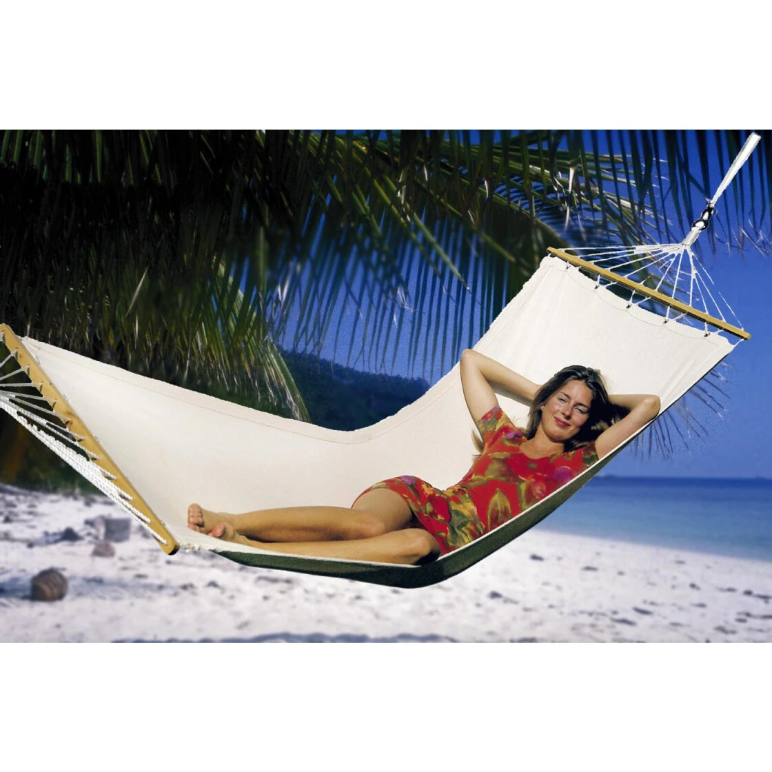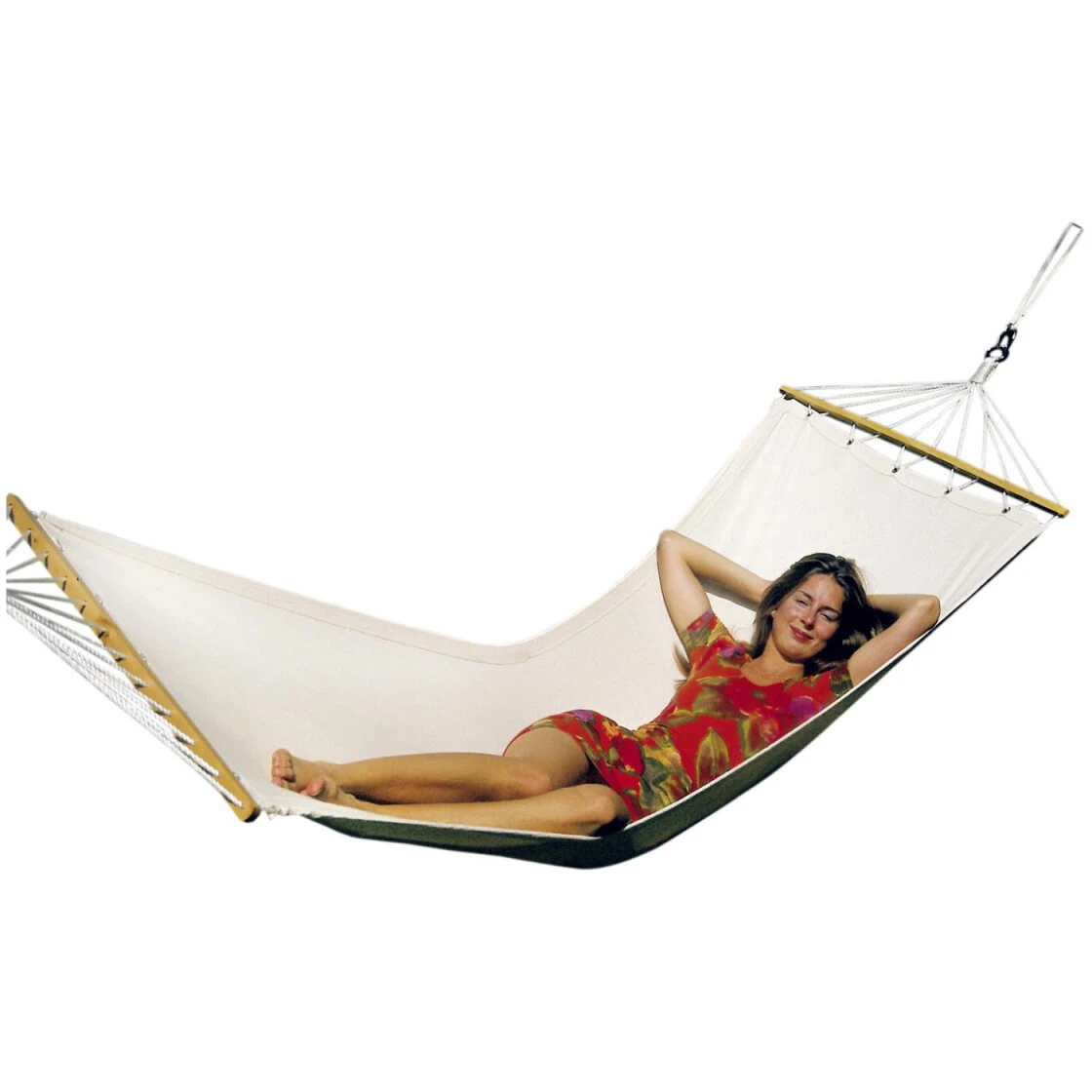 Hängematte aus EllTex, dem Extra Long Lasting Textile mit stabilem Holzstab als preiswerte Alternative.