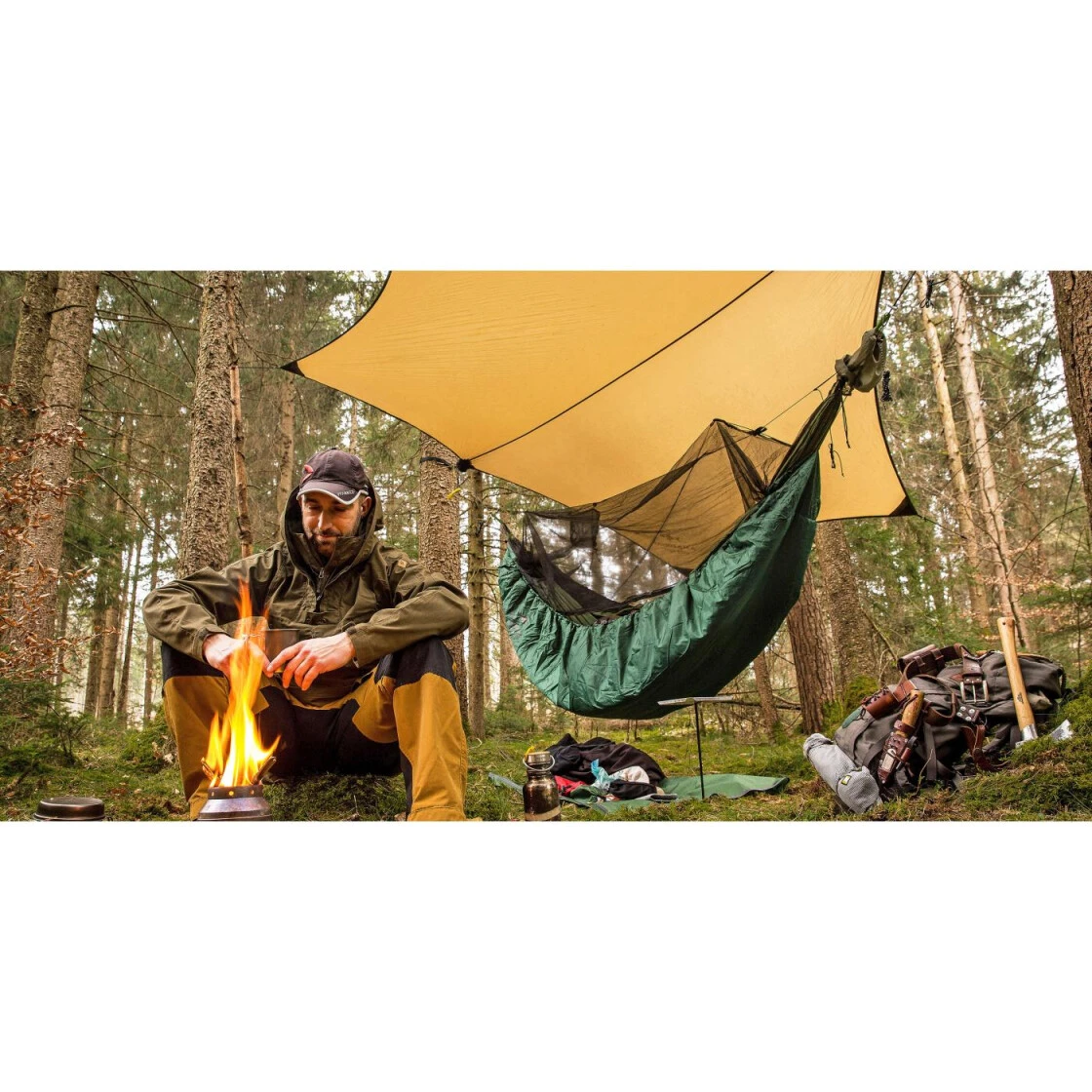 Der Hängemattenwärmeschutz. Ideal als Zusatzausrüstung für die Ultraleichten Hängematten. Diese sind bestens geeignet für die Übergangszeit oder auch längere Verweildauer, wie z. B. beim Übernachten. Wird mit den beiliegenden Mattenstraps und Aufhängeseilen unter der Hängematte befestigt und schützt mit der Hohlfaserisolierung zuverlässig vor Kälte und Wind. Der Transportbeutel, die Straps sowie zwei Aufhängeseile für den Wärmeschutz (nicht für die Hängematte!) gehören zum Lieferumfang.