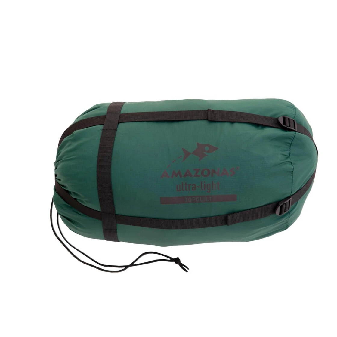 Topquilt ist die Komfortlösung für die Übernachtung in der Hängematte: Er bietet in einer Ultra-Light Hängematte dank der Hohlfaser-Füllung den perfekten Wärmeschutz von oben.Die konische Form vom Topquilt ist speziell zur Übernachtung in einer Hängematte designt – und das ganz ohne nervige Reißverschlüsse. Damit kann man leicht in eine Hängematte ein- und aussteigen und hat volle Bewegungsfreiheit für maximalen Schlafkomfort. Das Kopfende ist individuell justierbar. Das geschlossene Fußteil sorgt knieabwärts für besonders großen Wärmeschutz. Perfekten Schutz in kalten Nächten bekommt man in Kombination mit einem Underquilt (nicht im Lieferumfang enthalten). Doch keine Lust in der Hängematte zu schlafen? Dann kann der Topquilt auch als einfache Decke benutzt werden.