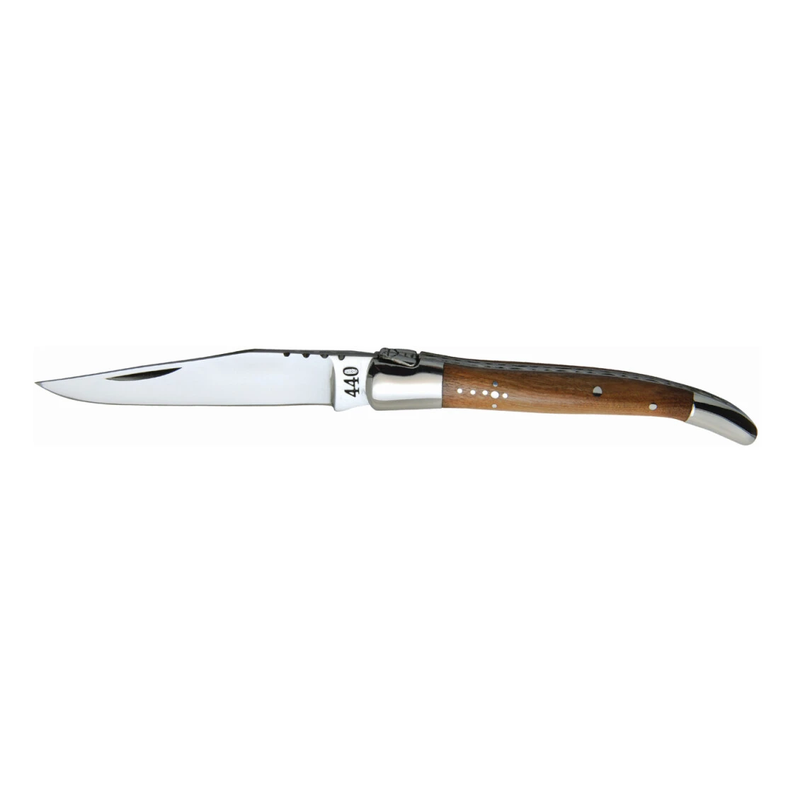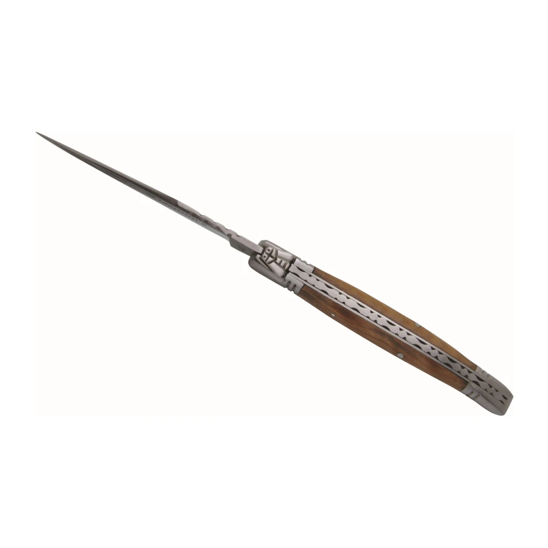 Die ‚Laguiole‘-Taschenmesser erfüllen hohe Qualitätsstandards in allen Bereichen. Die Klinge besteht aus 440er Stahl, auch ‚Chirurgenstahl‘ genannt, welcher optimal die Vorteile von Chrom (Schutz vor Rost) und Kohlenstoff (für eine scharfe Klinge) verbindet. Die ‚Laguiole‘ sind scharf geschliffen und behalten diese perfekte Schneidekraft monatelang. Die beiden Edelstahlkronen aus Vollmetall verstärken die Stabilität des Messers und runden sein Erscheinungsbild ab. Der Griff in Varianten: Büffelhorn, mehr oder weniger stark gemasert, mit grauen und/oder braunen Adern, Olivenholz mit starker Maserung als Klassiker oder Eschenholz. Jedes Messer ist ein Unikat. Als Ornament tragen diese Modelle ein Hirtenkreuz in Einlegearbeit sowie die typische ‚Laguiole‘-Biene und ins Metall gravierte Muster auf dem Rücken des Griffs.