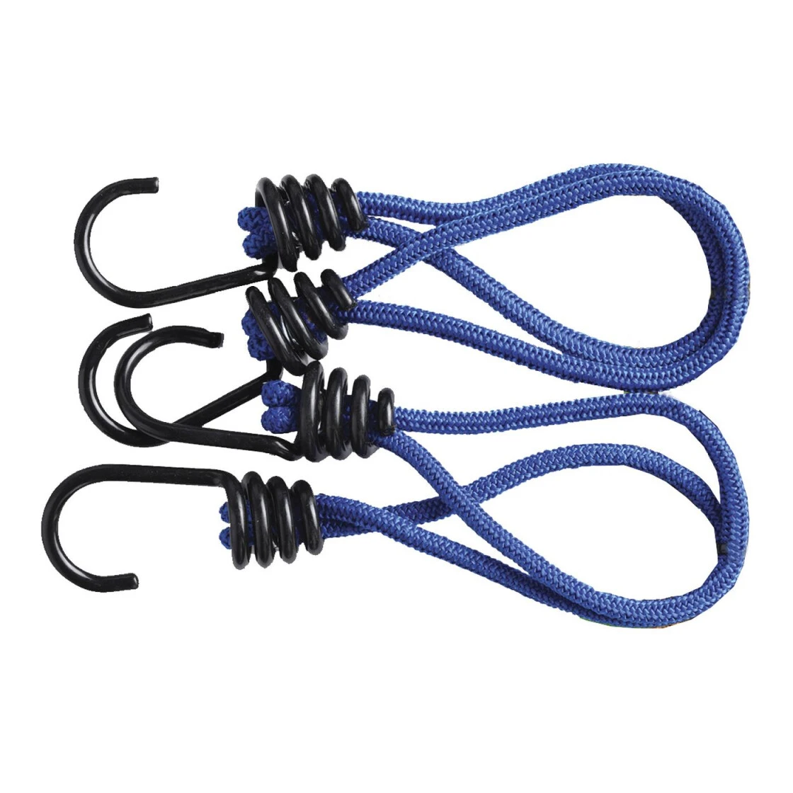 Mit kunststoffbeschichteten Haken versehene, kurze Gummiösen, die es erlauben, Zelte und Planen elastisch abzuspannen. Materialschonend und effektiv.