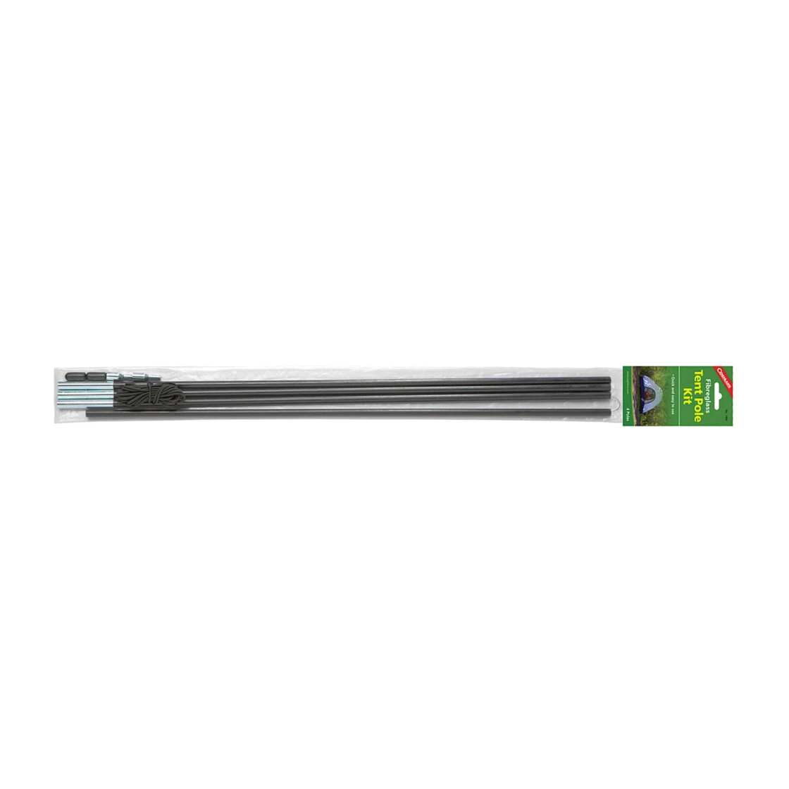 Set zur Reparatur von Glasfiberstangen. Mit vier Segmenten (drei davon mit Verbinder), zwei Vinylabdeckkappen, ein Einführdraht (73 cm) sowie 25 cm Gummiseil.
