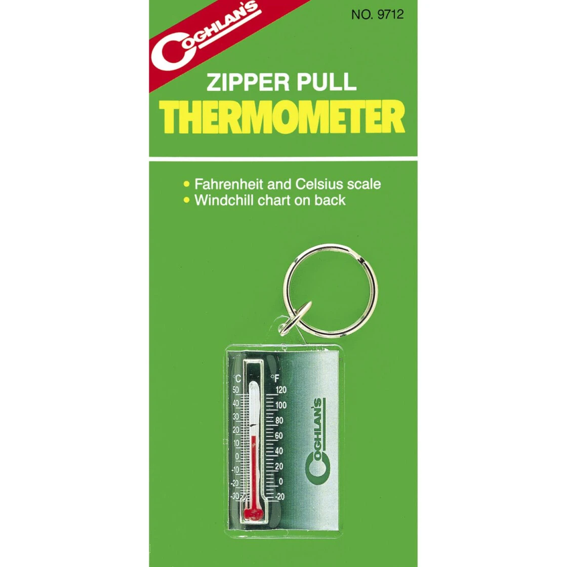 Kleines Thermometer für den Reißverschluss oder den Schlüsselbund, die Jacke oder das Gepäck. Mit Fahrenheit- und Celsiusskala. Windchillskala auf der Rückseite (nur in Fahrenheit).