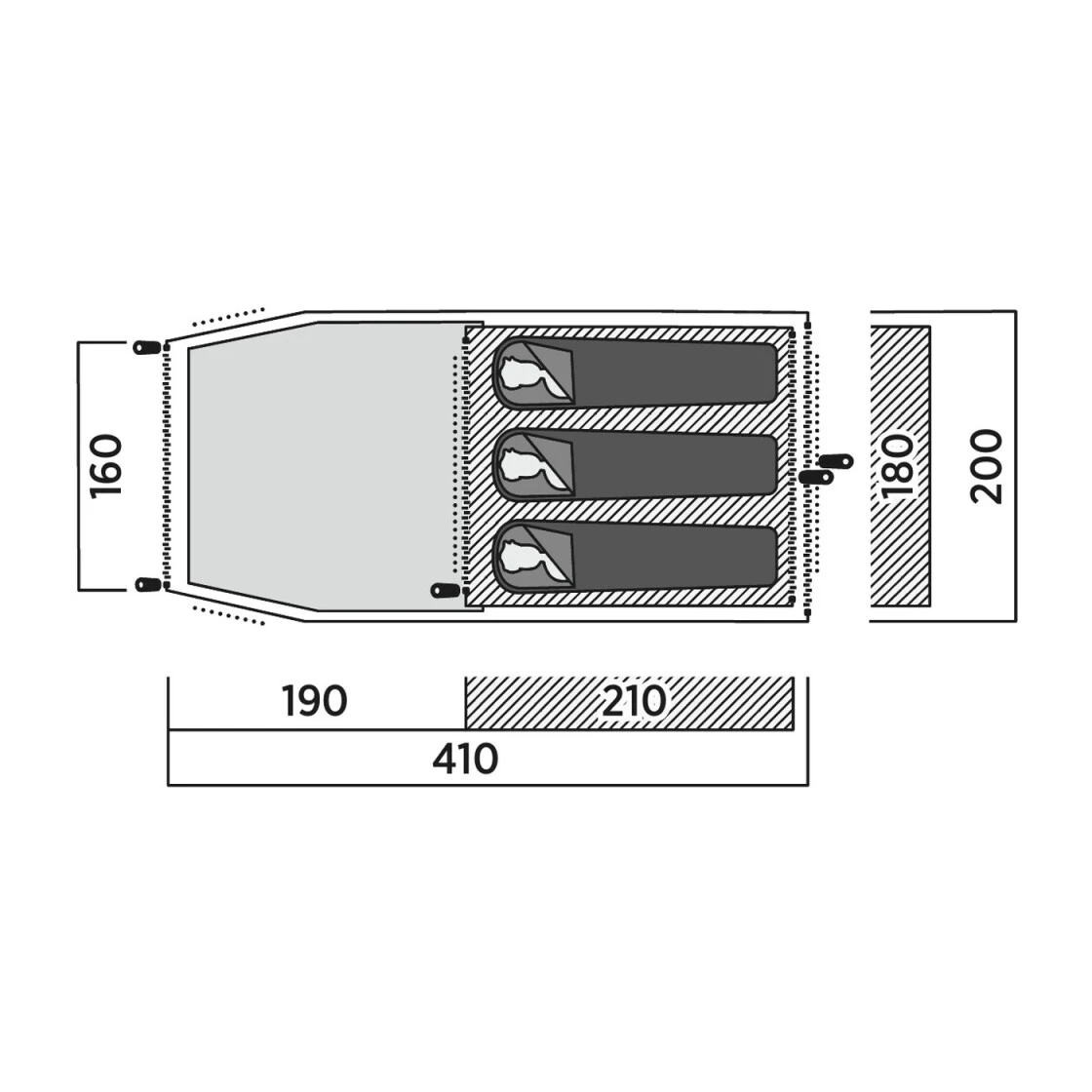 Das geräumige Tunnelzelt ‚Marbella 300‘ ist der perfekte Begleiter für Ihren Sommerurlaub! Durch den zusätzlichen Eingang auf der Rückseite (komplett mit Moskitonetz) haben Sie leichten Zugang zum Innenzelt und können die großartige Belüftung sowie die Aussicht genießen. Für ungestörte Erholung sorgt die abgedunkelte Schlafkabine.