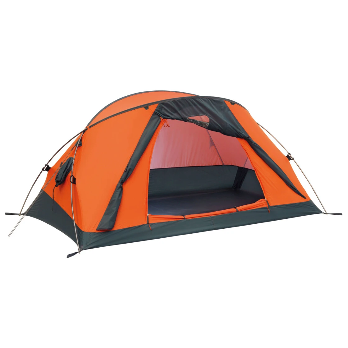 Kompaktes Hochland-Zelt für Bergsteiger und Trekker mit Vorraum. Hergestellt aus robuster Teflon-Gewebe-Technik. Mit stabilem und gekennzeichnetem Gestänge, dreifach verstärktem Material an den Stresspunkten, Spannleinen, Transportsack, ‚V-Shape‘ Aluminiumheringen, komplett wasserabweisend und Reparaturkit.