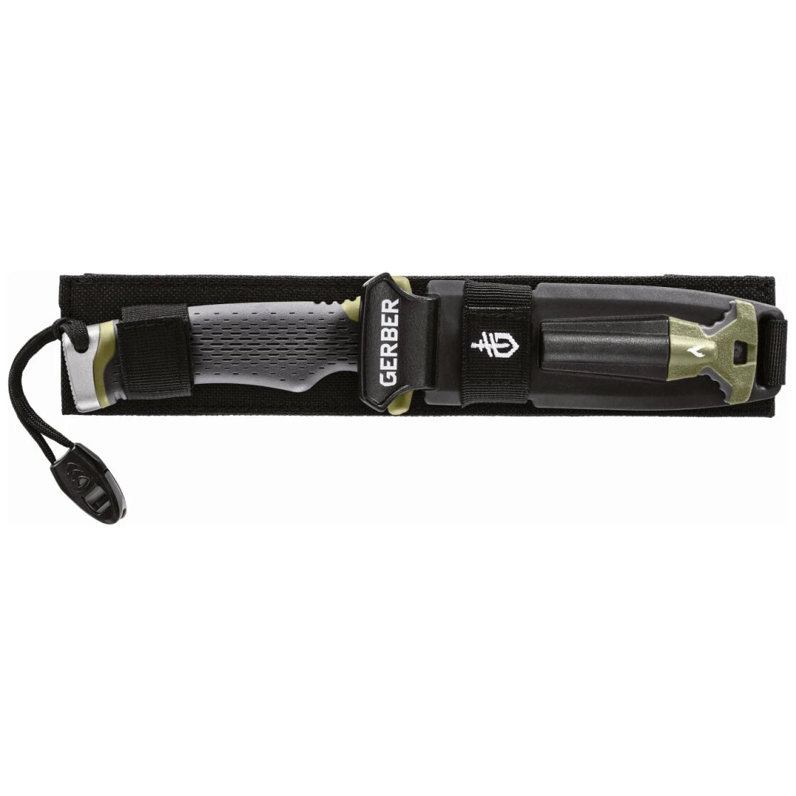 Das Gerber Survival-Messer ist vollgepackt mit Innovationen und damit ein Multitalent. Das Messer verfügt über eine Drop-Point-Klinge aus rostfreiem Stahl 7Cr17MoV mit Teilwellenschliff, einen strukturierten Gummigriff, einen Stahlhammer-Knauf und eine Notfallpfeife. In der Messerscheide steckt ein Feuerstahl für die Verwendung zusammen mit dem Klingenrücken. Ein Messerschärfer in der Messerscheide ermöglicht sofortiges Nachschärfen. Das ideale Messer für Bushcraft- und Survival-Fans, für die Feuermachen und eine Schutzbehausung bauen auf der To do“-Liste stehen!“