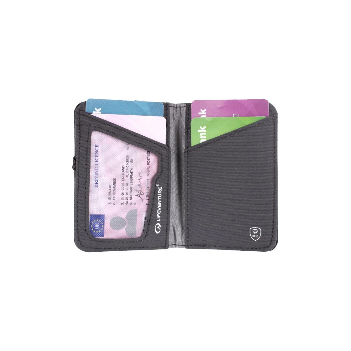 Völlig RFID geschütztes Kartenetui mit vier Kartenschlitzen für Ihre Kredit- und Ausweiskarten. Ein Fach mit ID-Fenster und zwei kleinen Aufbewahrungstaschen. Sehr schnell geöffnet und verschlossen.