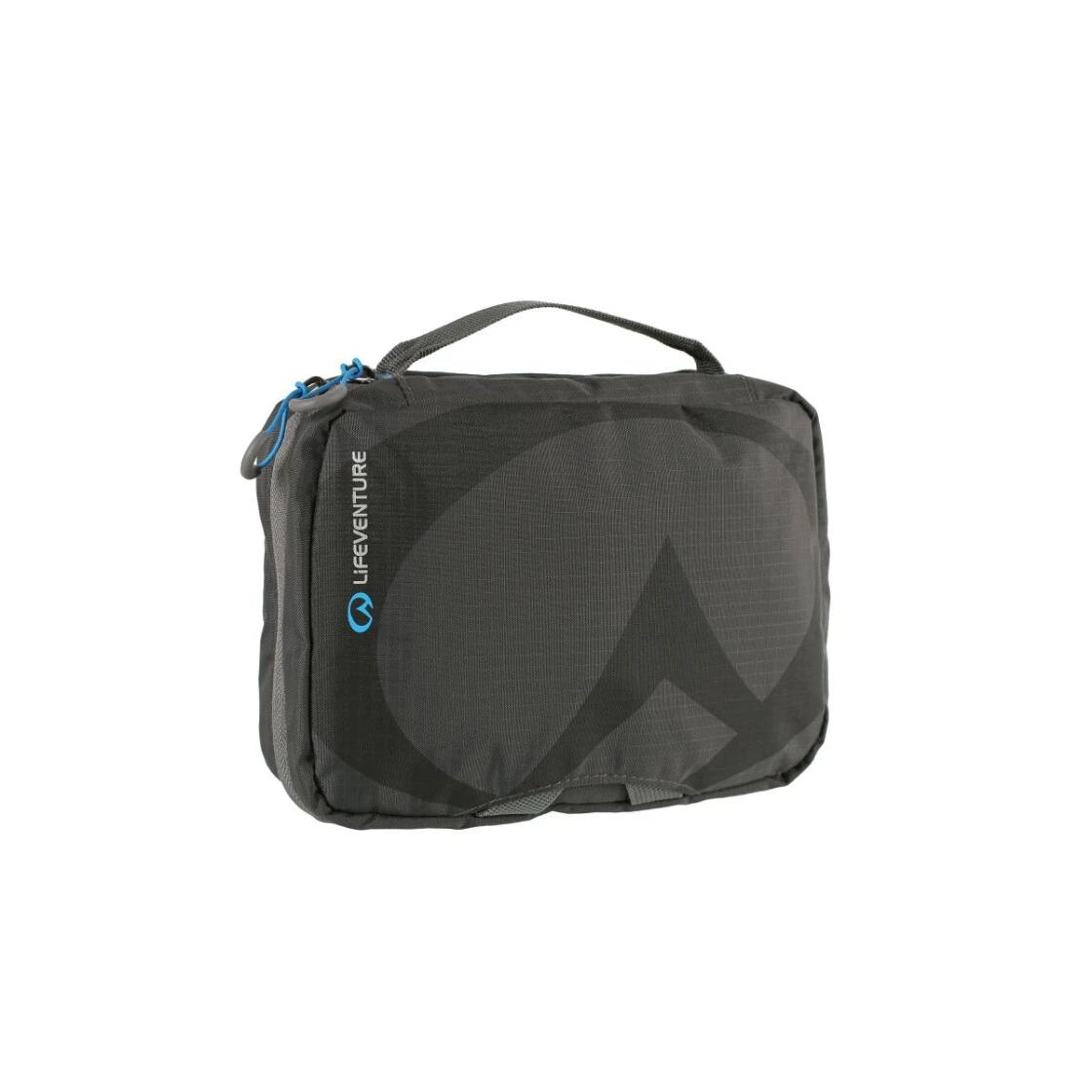 Die Waschtasche verfügt über zwei Hauptfächer für nasse und trockene Wäsche, eine Außentasche und zwei Innentaschen.