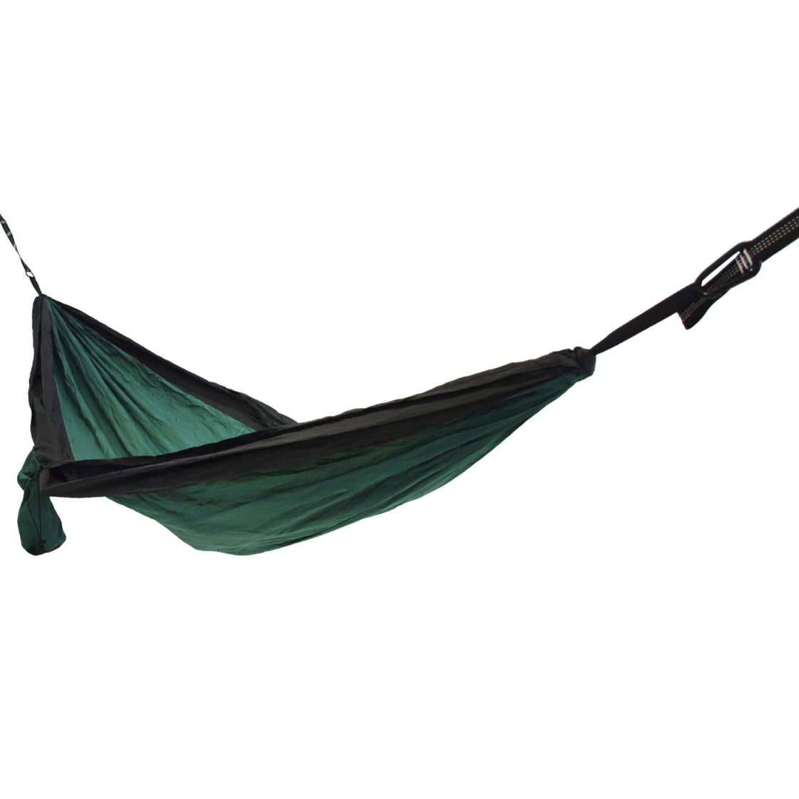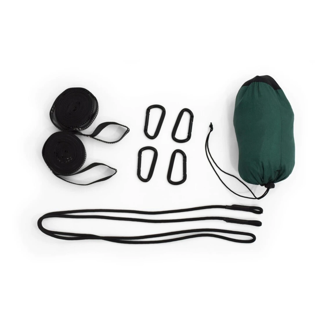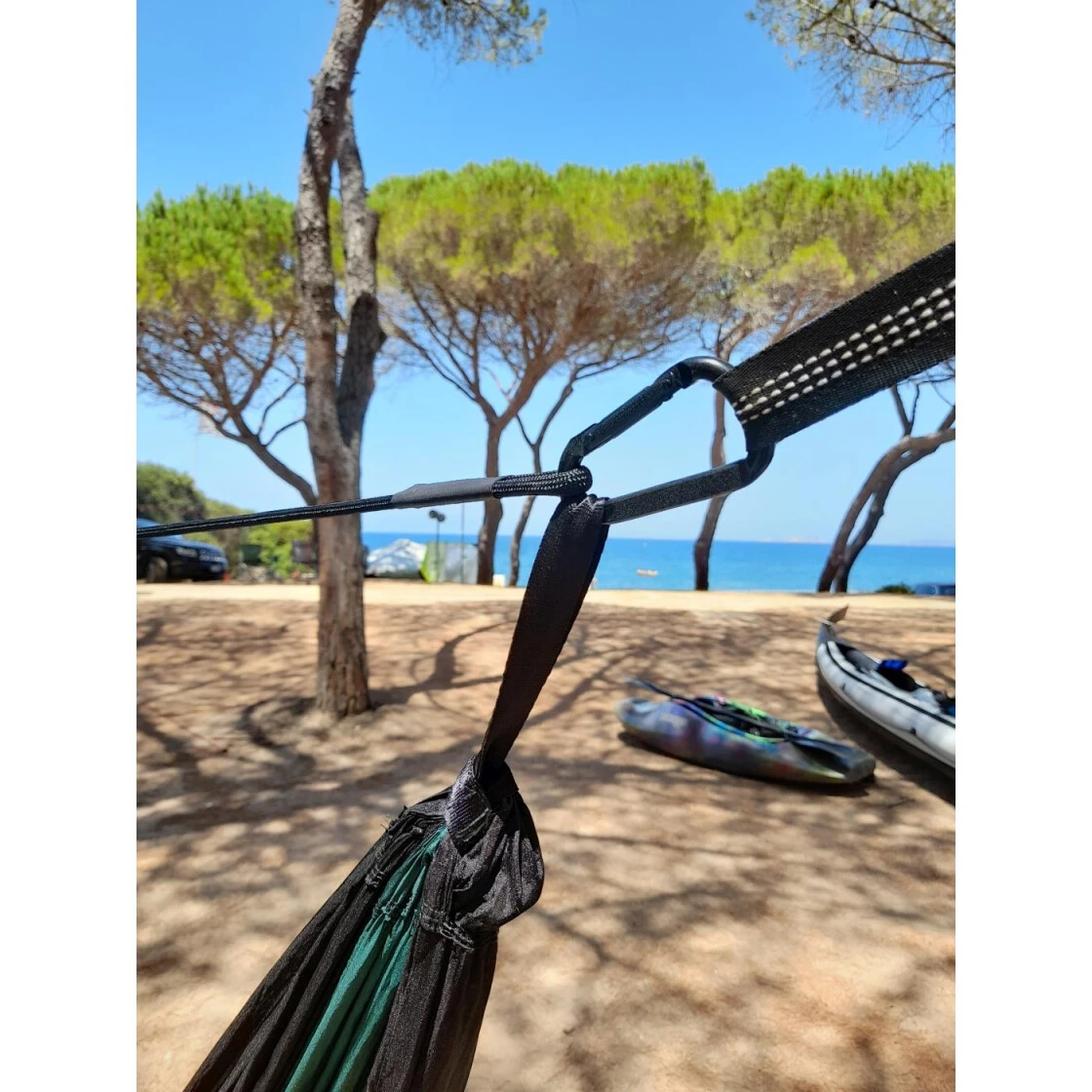 - Gewicht: Hängematte 400 g / Karabiner 244 g / Abspanngurte 262 g