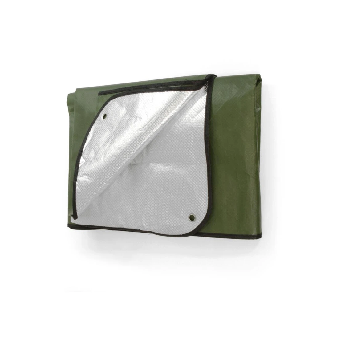 Die ultraleichte und reißfeste Picknickdecke verfügt über eine gewebeverstärkte Einlage. Die Unterseite ist wasserdicht und reflektierend beschichtet, die Decke hat somit eine wärmeisolierende Wirkung. Der Rand ist mit einem Band eingefasst und doppelt vernäht. Mit den 4 Ösen kann die Picknick Decke am Boden fixiert werden. Sie kann auch als Zeltunterlage, Tarp oder Notfalldecke verwendet werden.