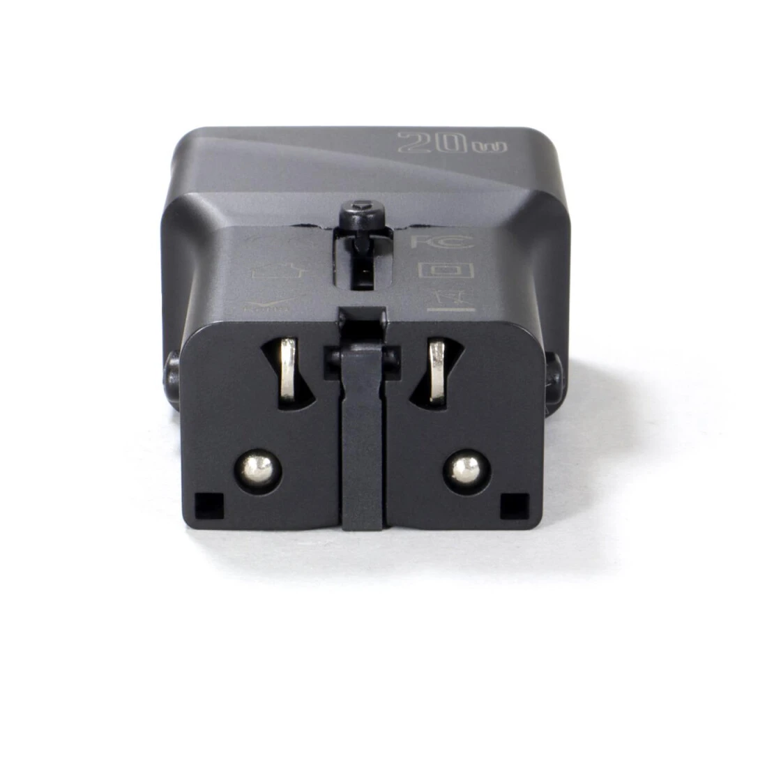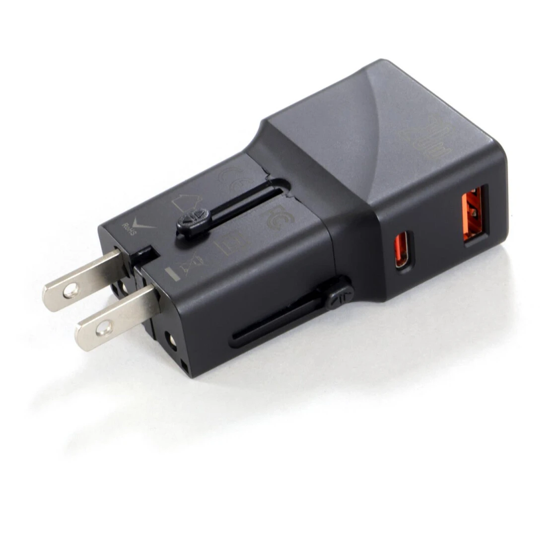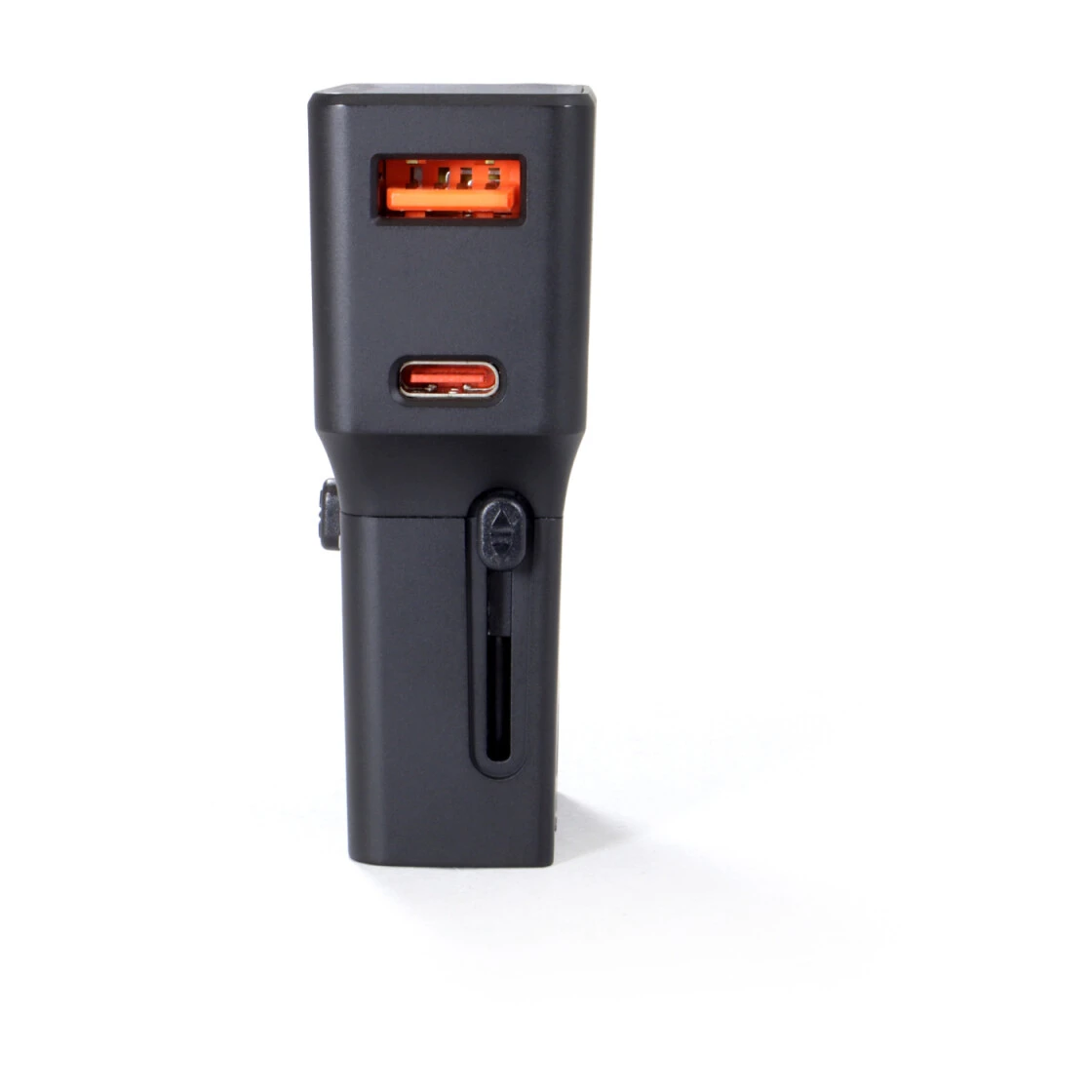 USB-Ladegerät mit Schnellladetechnologie. Das Ladegerät ist dank 4 verschiedener Steckertypen für über 200 Länder geeignet (z. B. USA / GB / Australien / China, etc.). Die integrierte PD-Technologie (Power Delivery) ermöglicht ein sicheres und schnelles Aufladen mit hoher Geschwindigkeit. Hierfür muss das zu ladende Gerät die PD-Technologie ebenfalls unterstützen. Das Ladegerät verfügt über einen USB Typ-A und einen USB Typ-C Ausgang, an welchen z. B. das Handy, Tablet oder das Notebook aufgeladen werden können. Das Gehäuse ist aus feuerhemmendem Polycarbonat gefertigt. Dank des geringen Gewichts und der kompakten Bauweise ist das Ladegerät ein perfekter Begleiter für die Reise.