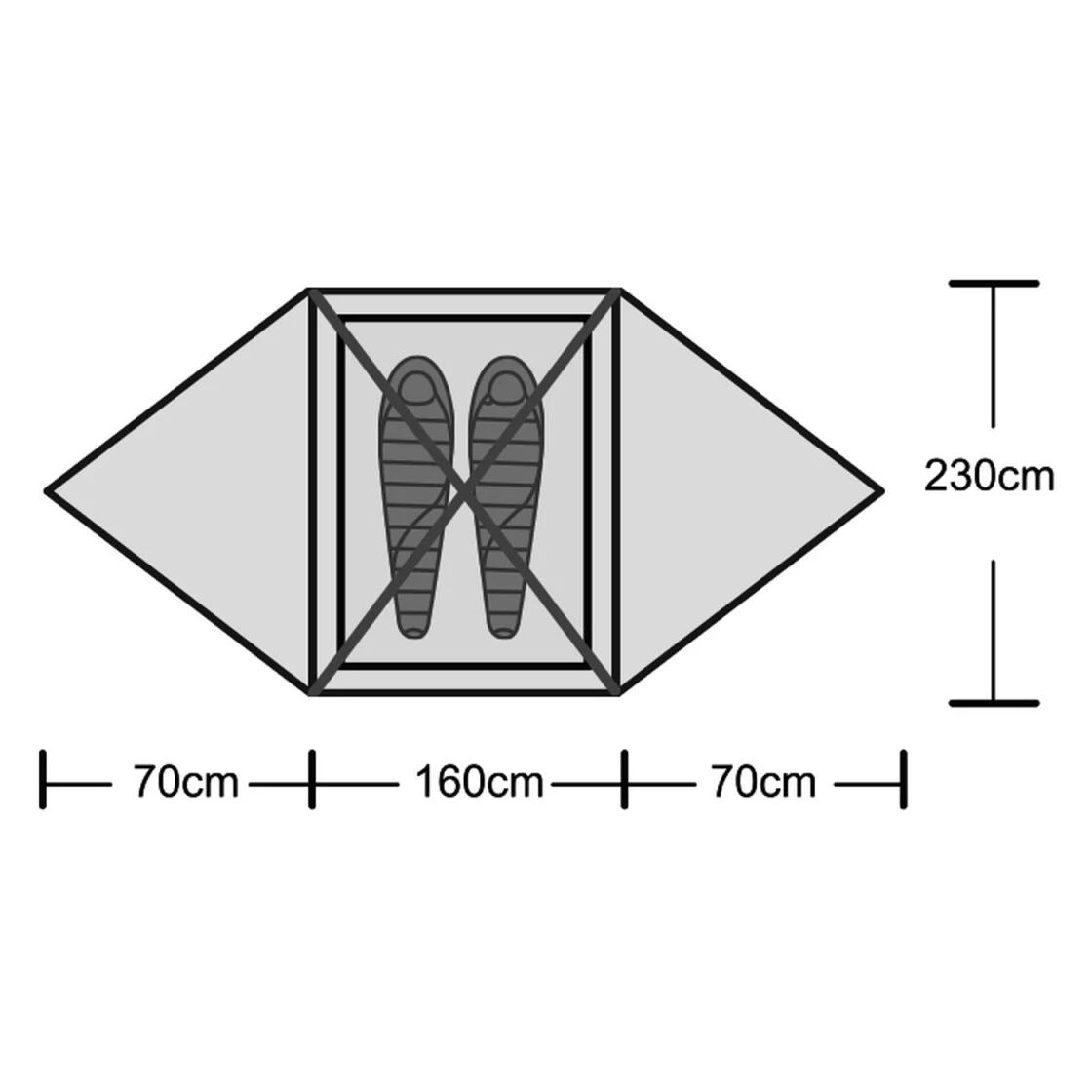 - Außenmaß (70+160+70) x 230 x 125 cm