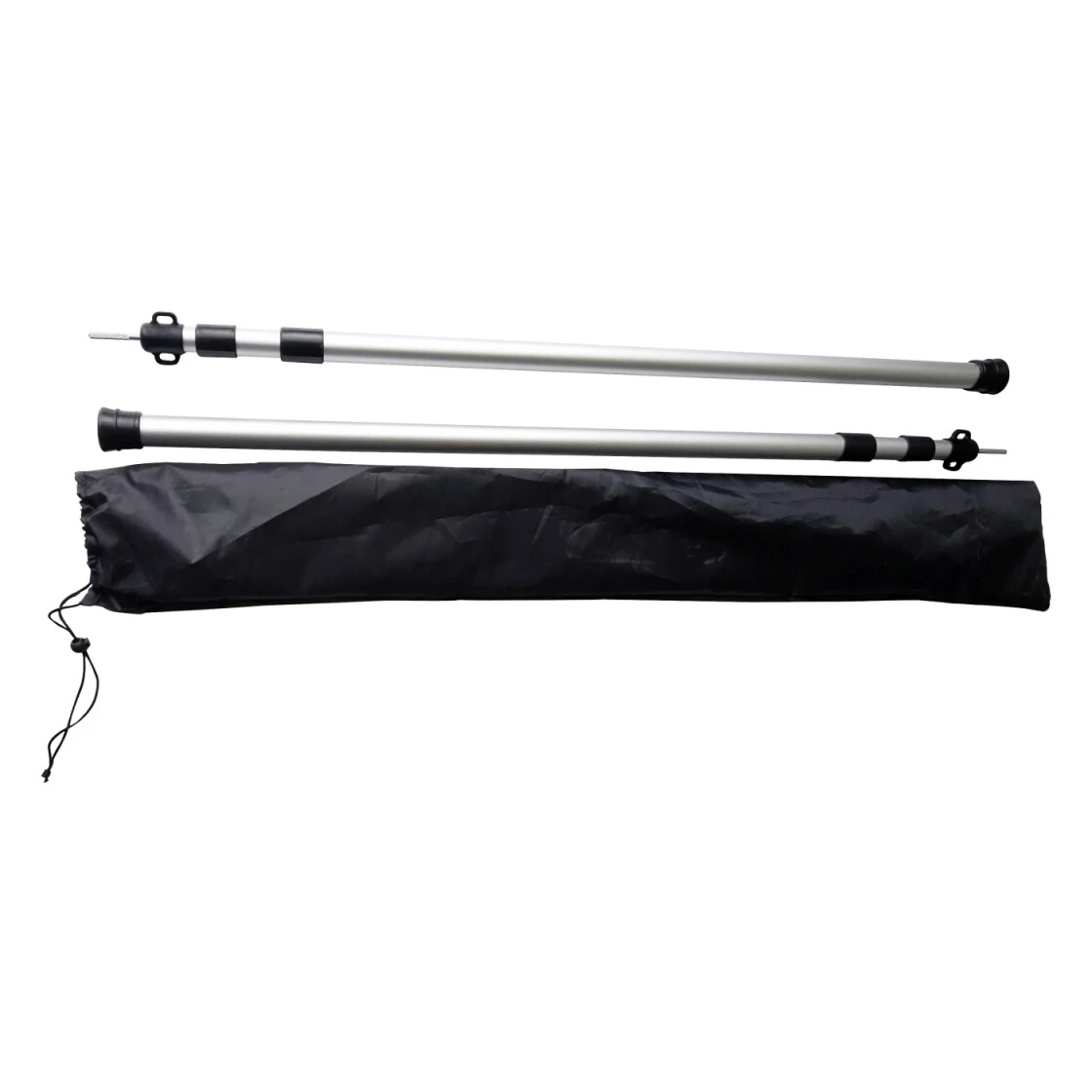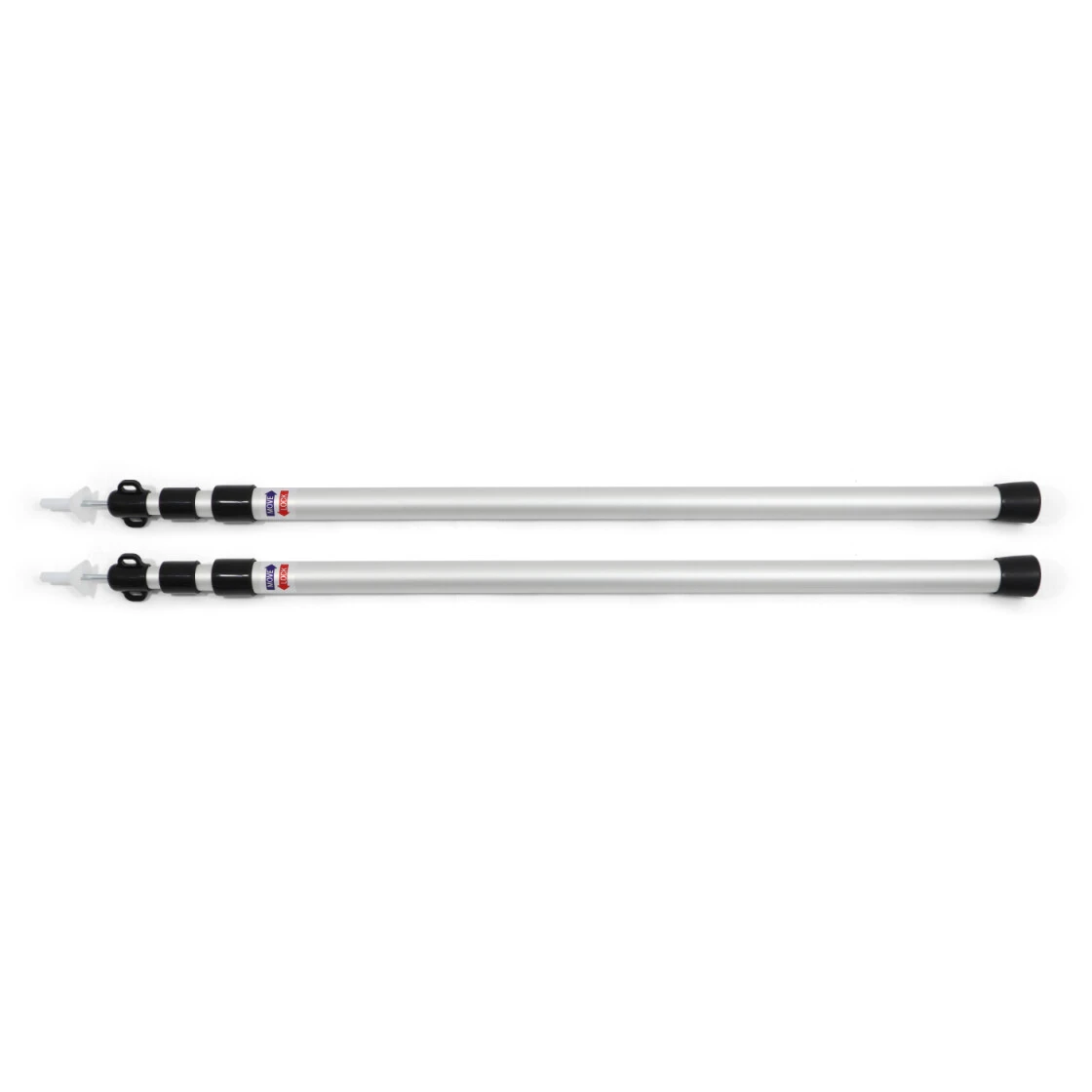 Leichte und teleskopierbare Aufstellstangen für Ihre Tarps, Planen und Vorzelte. Mit Klemmverschlüssen (ähnlich wie vom Bergstock bekannt). Die 3 Segmente werden auseinandergezogen und mit einer Drehung im Uhrzeigersinn fixiert.
