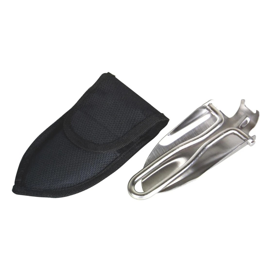 Stabile Schaufel aus rostfreiem Edelstahl mit klappbarem Griff. Dadurch lässt sich diese Schaufel gut transportieren. Für die diversen Grabungen bei Camping, Outdoor und Freizeit optimal geeignet. Komplett mit schwarzem Nylonholster und Gürtelschlaufe.
