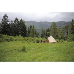 Das ‚Klondike‘ Tipizelt vereint stilvolle Optik mit exzellentem Komfort für bis zu sechs Personen und ist somit ideal für größere Familien und Gruppen. Die Tür hat ein Meshfenster und einen Vorhang. Die flexible Belüftung durch Meshöffnungen an der Basis und Spitze des Zeltes ist ebenfalls gegeben. Ein einzippbarer Polyesterzeltboden sorgt für vielseitige und praktische Nutzung auch an schlechten Tagen. Ein optionales Vier-Personen-Innenzelt ist für das Tipi erhältlich und sorgt für die nötige Privatsphäre, falls gewünscht. Das Tipi hat einen Ausgang für ein Ofenrohr. Somit ist der Betrieb eines Robens Zeltofens möglich (der Boden kann dafür bis zur Mitte geöffnet werden). Das Abenteuer kann beginnen.