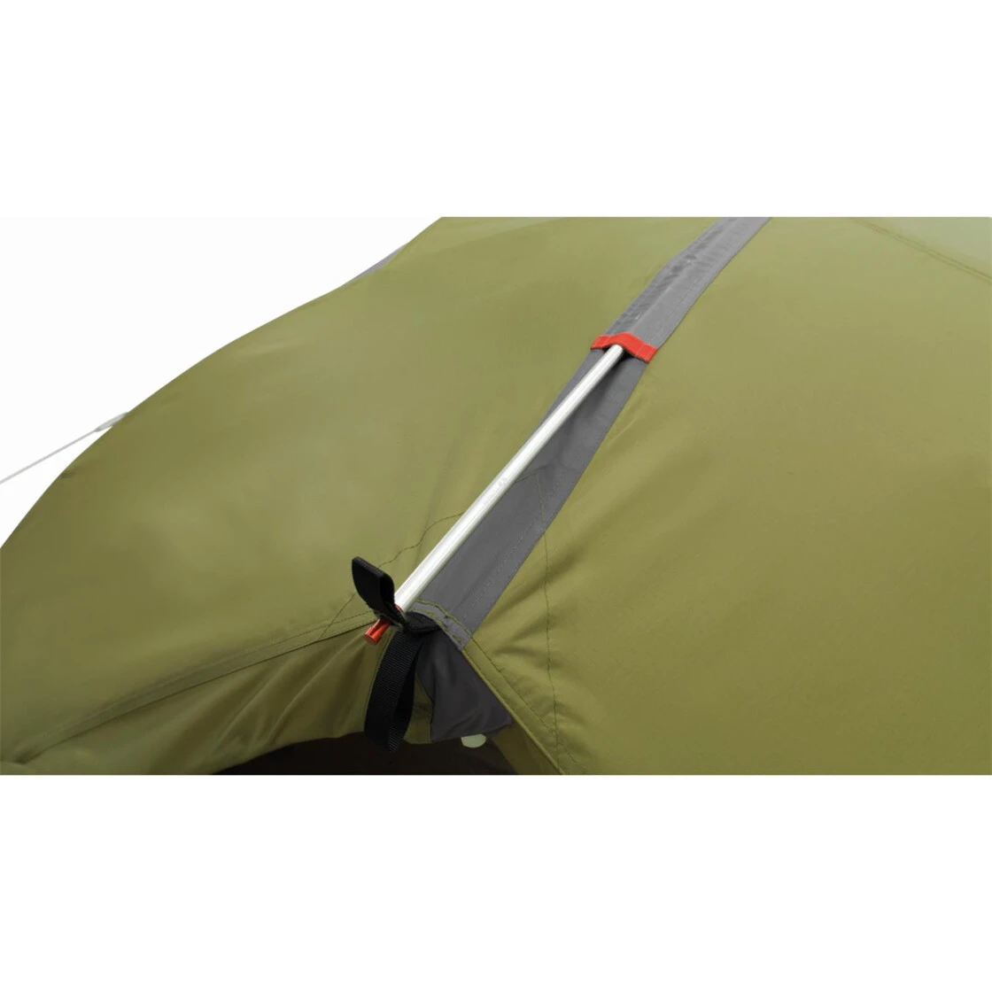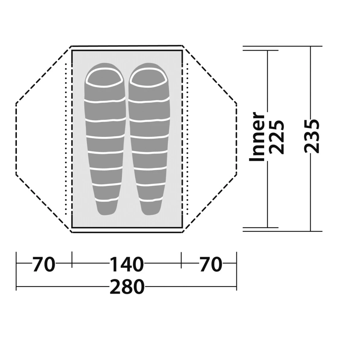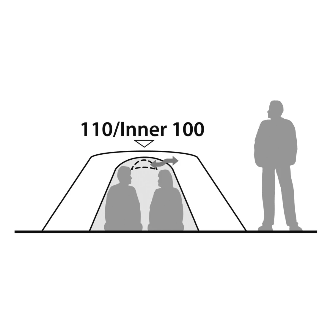 Die Kombination aus Kuppelzelt und kurzer Querfirststange ermöglicht hier eine tragbare Lodge zum flexiblen Wohnen, Kochen und Verstauen mit hervorragender Höhe und Breite. So können die Bewohner sogar bequem nebeneinander im Zelt sitzen. Die beiden Öffnungen gestatten einen leichten Zugang für die Camper bei jeder Witterung und bewirken eine sehr gute Belüftung. Das Innenzelt wird hier zuerst aufgebaut.
