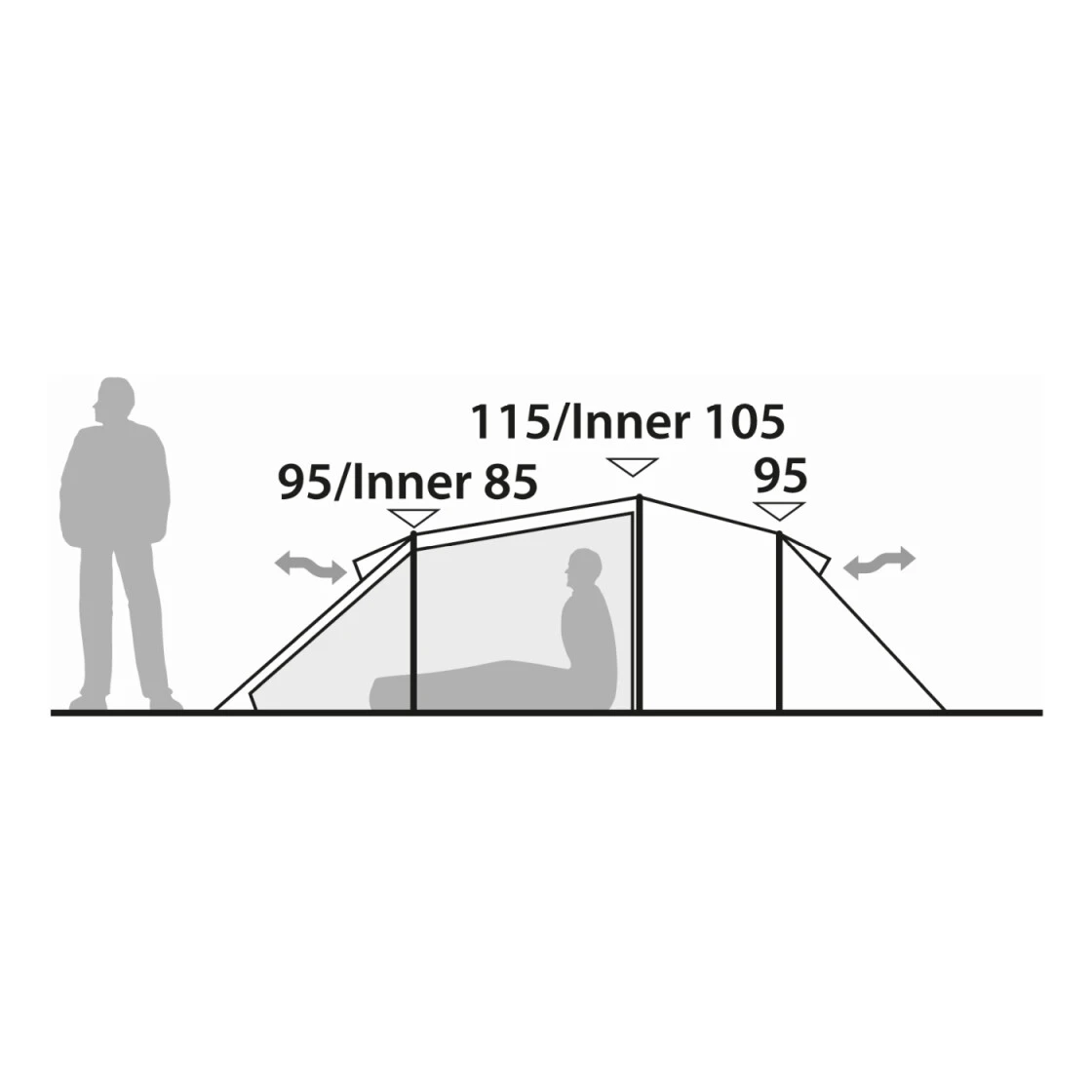 Dieses Tunnelzelt bietet viel komfortablen Raum für bis zu drei Personen und ist stabil und einfach aufzubauen. Es hat eine Seitentür, die zu einem großzügigen Vorraum führt. Auch besitzt es viel Staufläche und eine angenehme Höhe, um bei schlechtem Wetter entspannt im Inneren sitzen zu können. Das geringe Gewicht und der viele Platz, lässt dieses Zelt somit als geräumige Option erscheinen. Vordere und hintere Lüftungsöffnungen erzeugen einen Luftstrom, um die Kondensation zu minimieren.