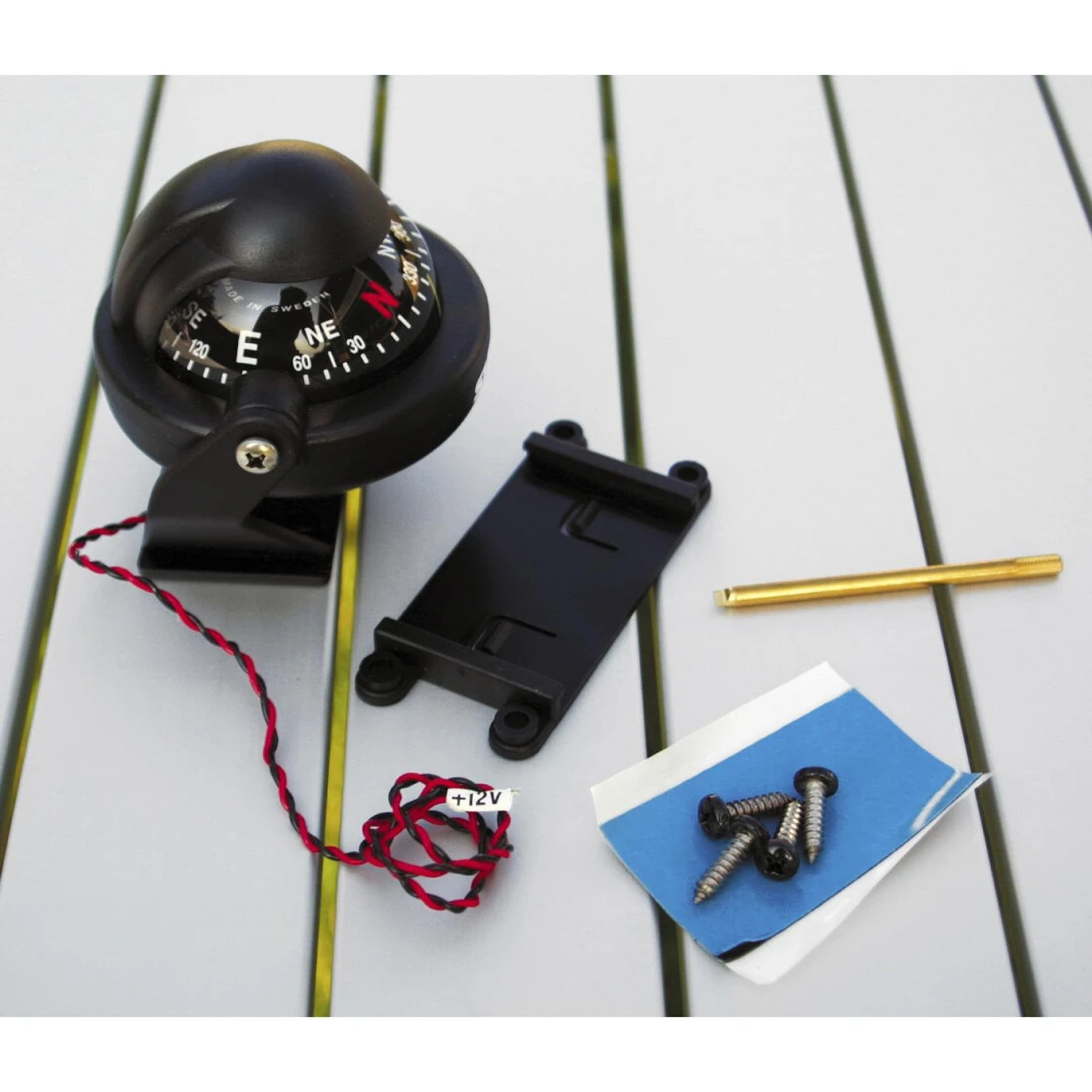 Ein Fahrzeugkompass, der insbesondere für Allradfahrzeuge und Kleinfahrzeuge sowie Motorboote entwickelt wurde. Mit LED-Beleuchtung der Kompassrose und Möglichkeit zur Korrektur der Deviation durch die umgebenden Magnetfelder, die den Kompass beeinflussen (Autoelektrik, Metallteile, etc.). Schönes Design und gut abzulesen. Lieferung mit Schraubplatte, Schrauben, Klebepad und Stift für Missweisungsausgleich (antimagnetisch!). Aufgrund der Bauart nicht für Temperaturen über 65 °C (z. B. in der Sahara unter der Windschutzscheibe) geeignet.